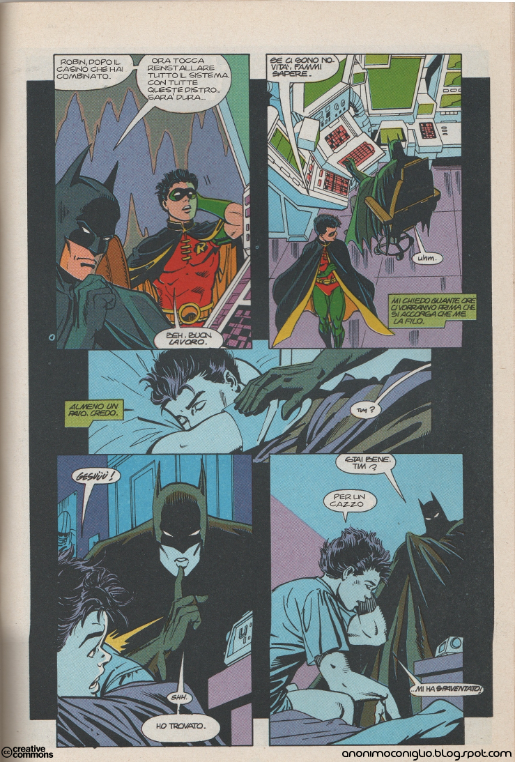 Questo prima che arrivasse Robin. Con l'arrivo di Robin Batman diventa più comprensivo. Ma cosa cazzo c'entra tutto questo con la Tana Del Coniglio? direte voi. Arriviamo al dunque: un bel giorno, mentre rovistavo i miei vecchi comics, ho trovato un passaggio in cui Robin gli incasinava il PC Batman, così ho deciso di condividerlo con voi.