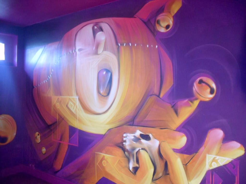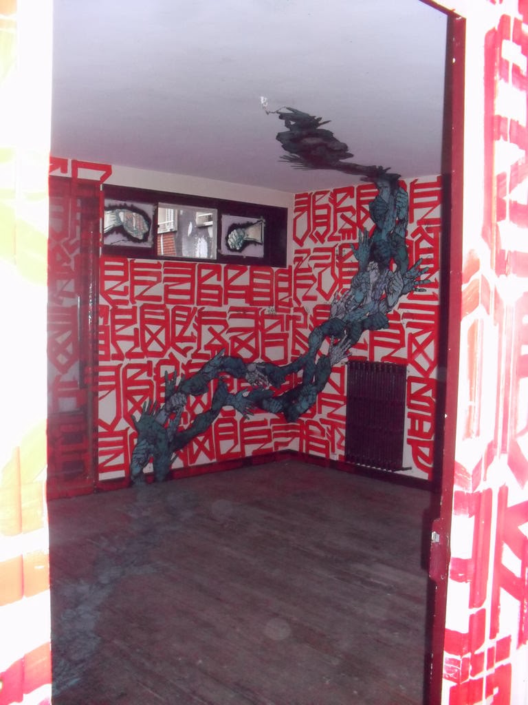 «ho pensato di fare una cosa molto diversa, di chiudere questo appartamento con una porta e farlo scomparire dal resto della casa, e mettere un piccolo buco, come se fosse un un buco della chiave per spiare dentro questa stanza, che non sarà più una stanza ma un luogo della mia mente, della mia fantasia» - Etnik (qui il video in cui spiega il processo creativo e lo si vede all'opera)